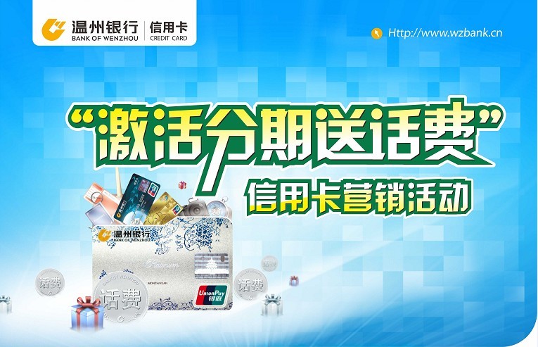 活动期间,温州银行未激活信用卡,成功激活并办理信用卡分期还款业务金额达10万元以上(含10万,可累计)即可赠送价值50元话费。